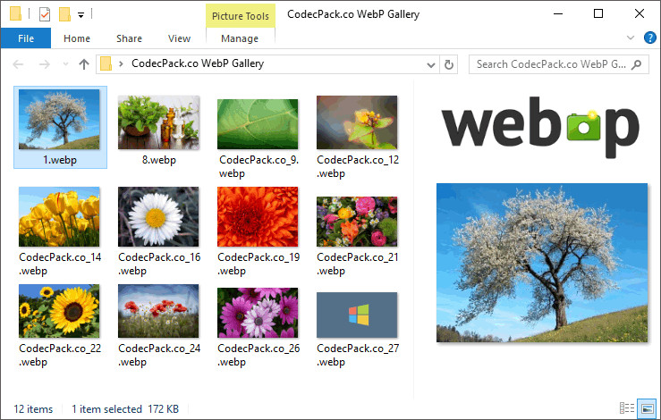 WebP Codec for Windows 安装后就能让 Windows 预览显示及打开WebP 格式的图片。