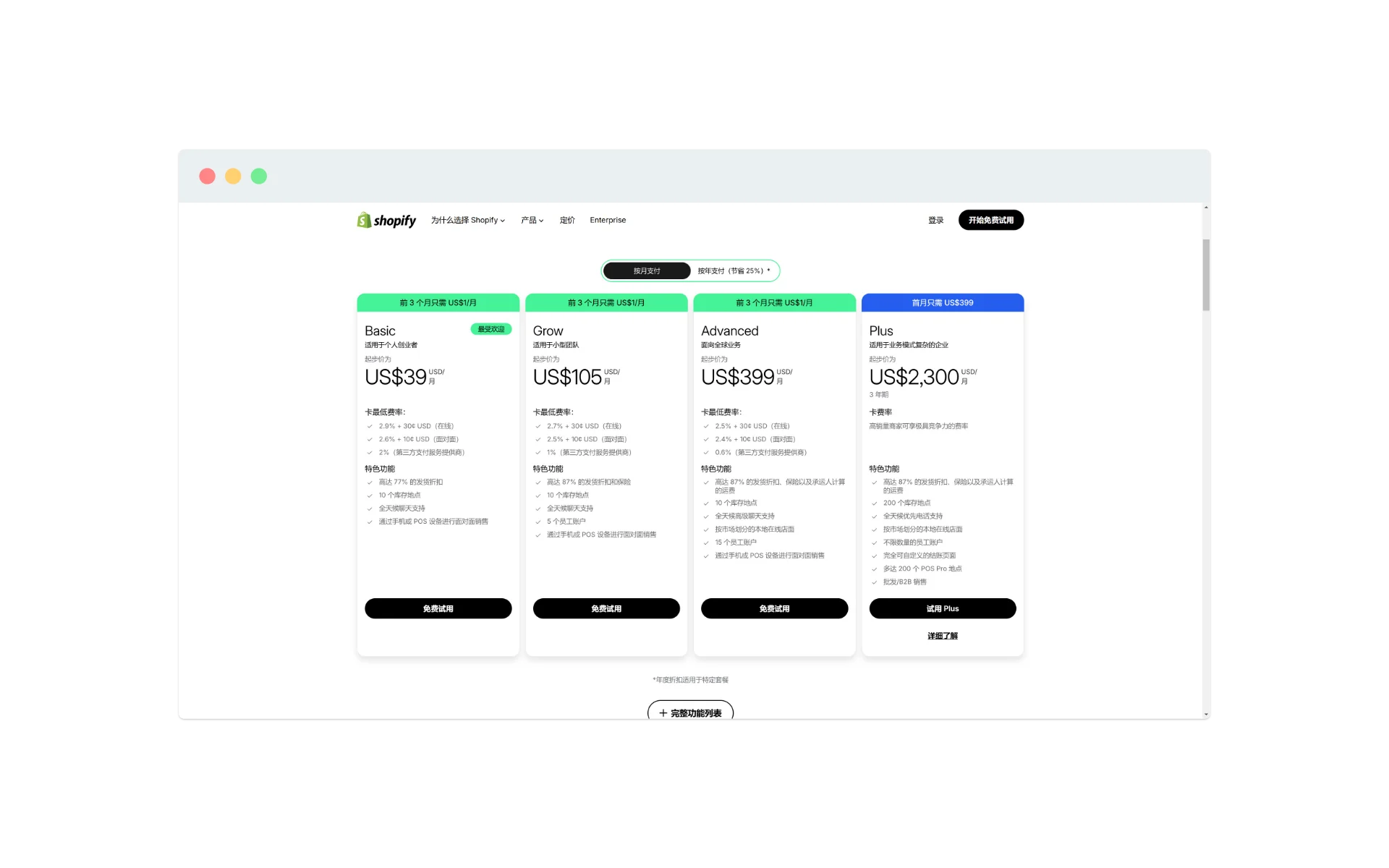https://www.shopify.com/zh/pricing