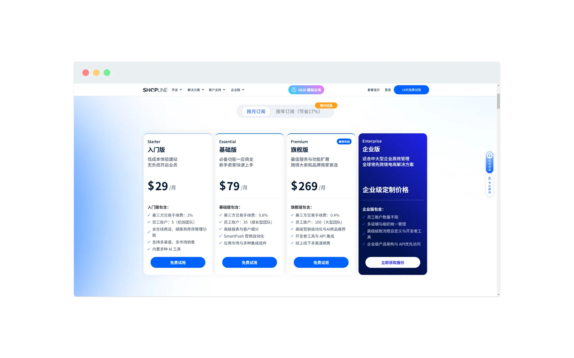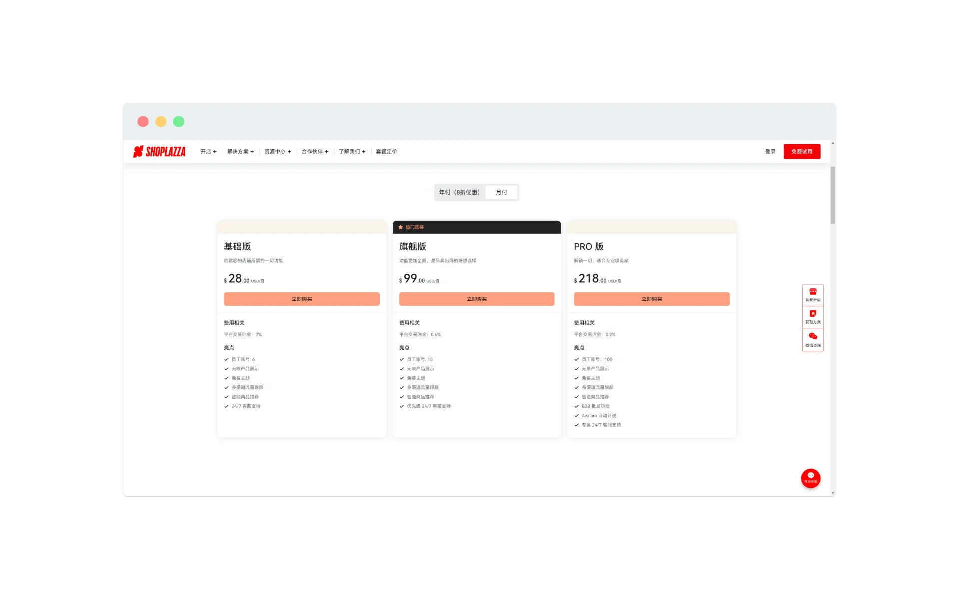 https://shoplineapp.cn/pricing/