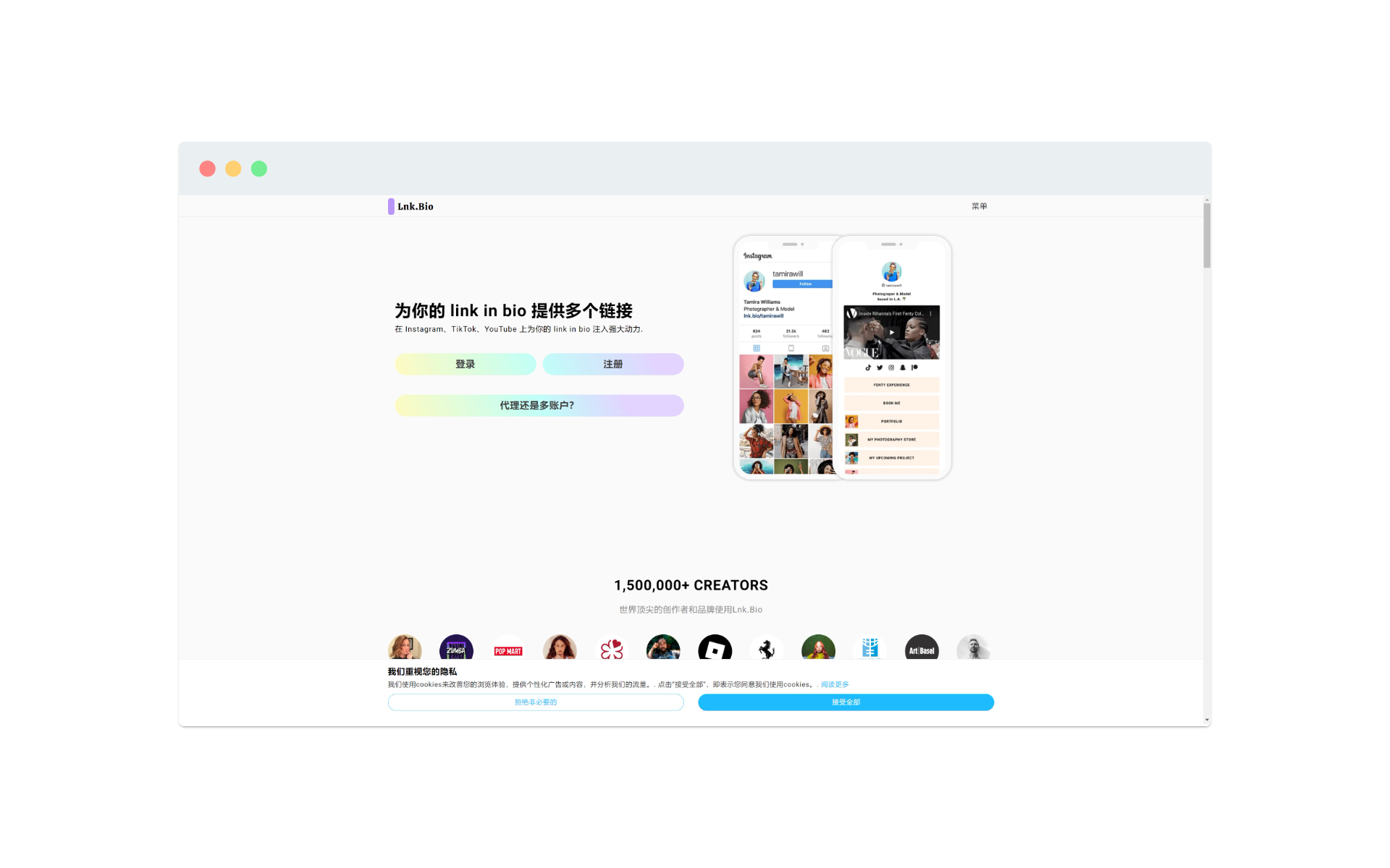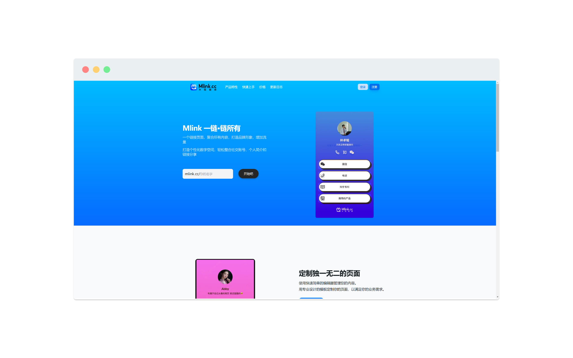 可以将自己的个人资料、文章、产品、项目等链接整合在一个页面上,方便粉丝和客户一键访问。